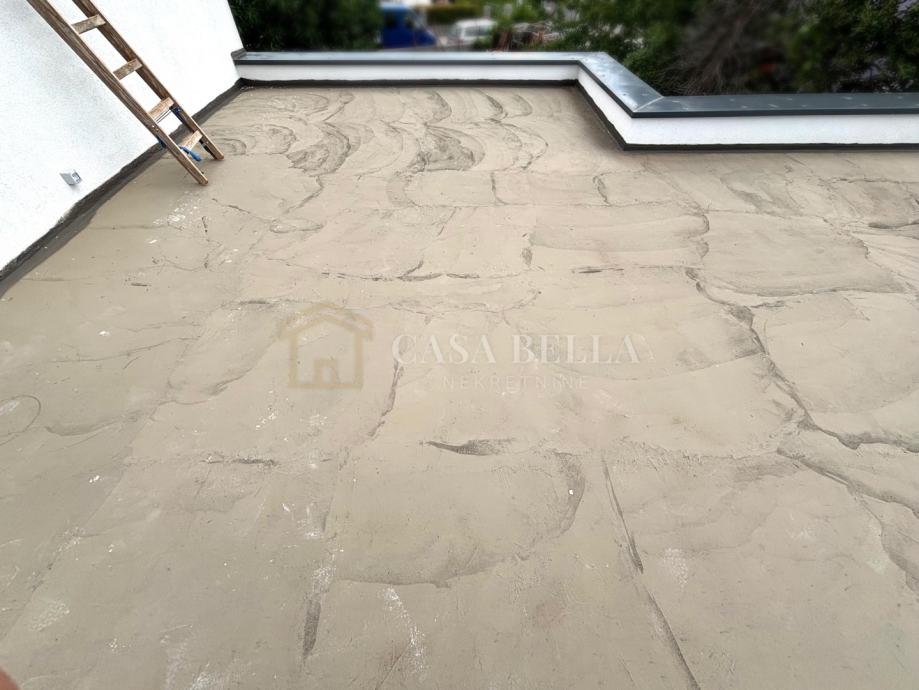 Uz stan dolazi pripadajuća krovna terasa površine 30 m² s koje se pruža otvoren pogled, te manja terasa ispred stana (5 m²) – savršena za jutarnju kavu. U cijenu je uključeno parkirno mjesto površine 12,5 m².