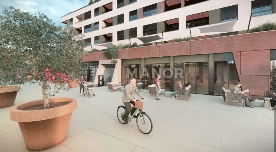 poslovni prostori. Između dvije građevine nalaziti će se trg - pješačka zona. Uz to, predmetna novogradnja