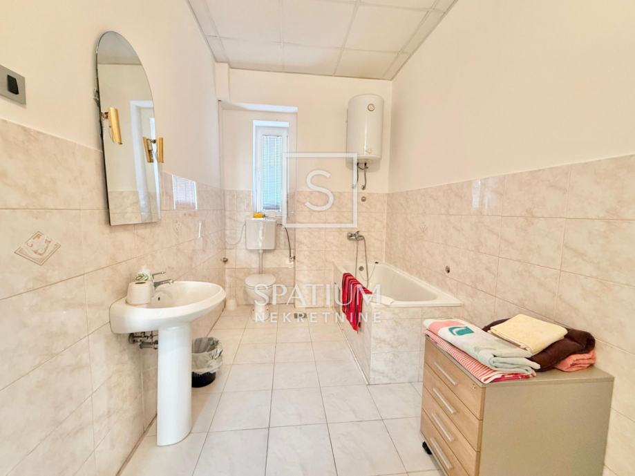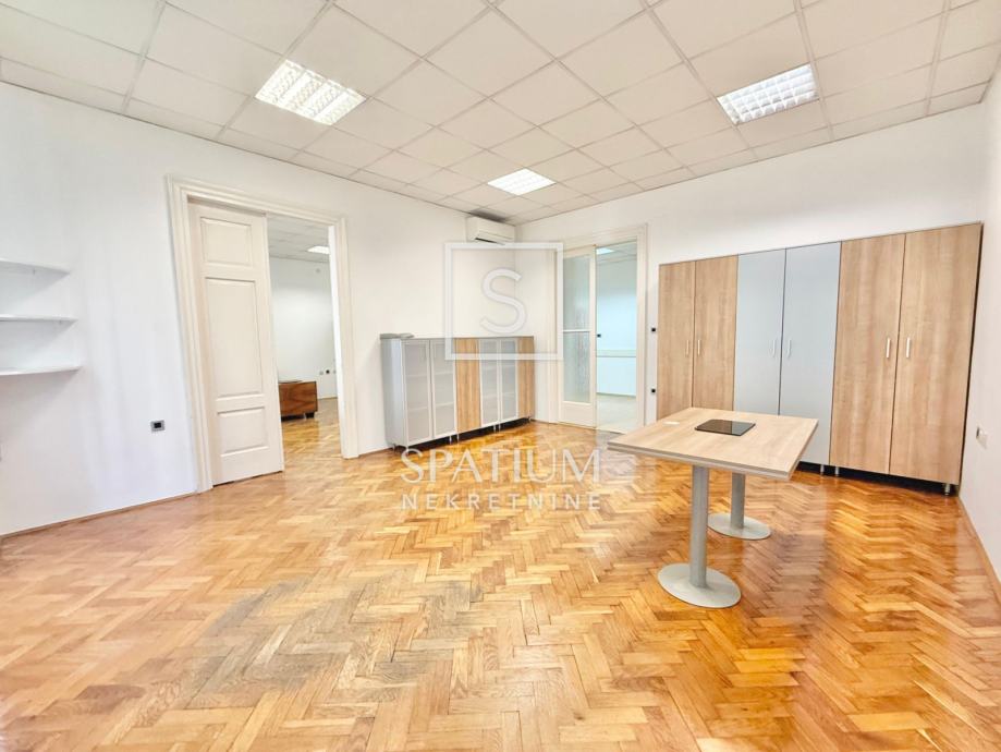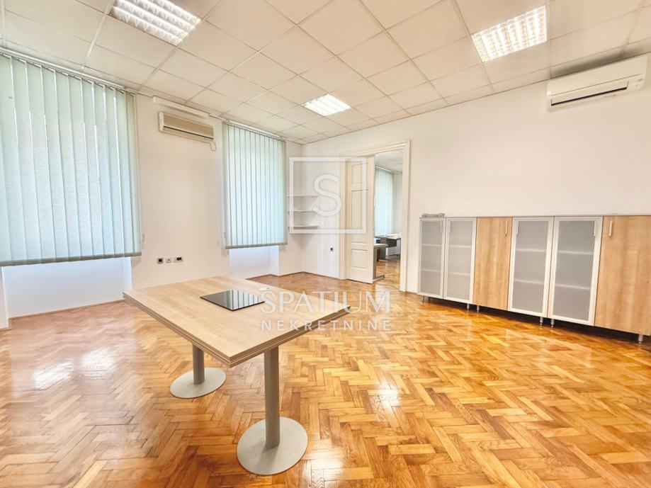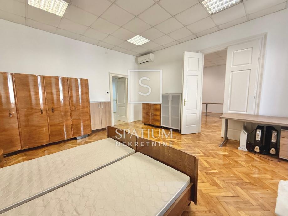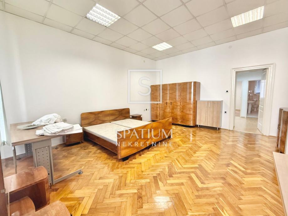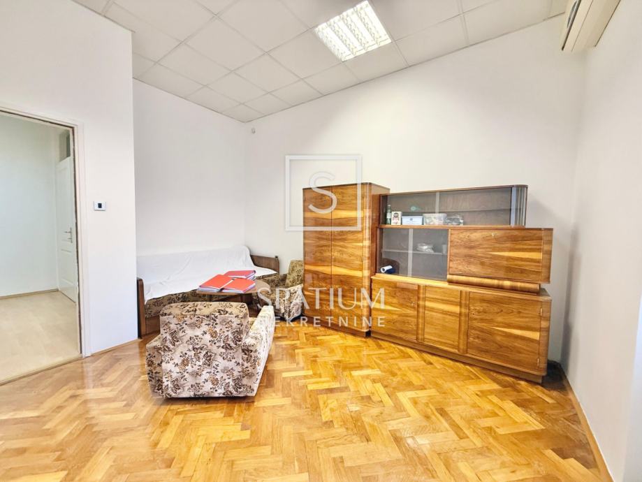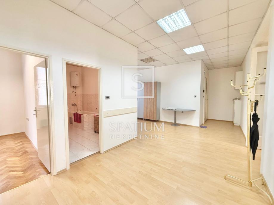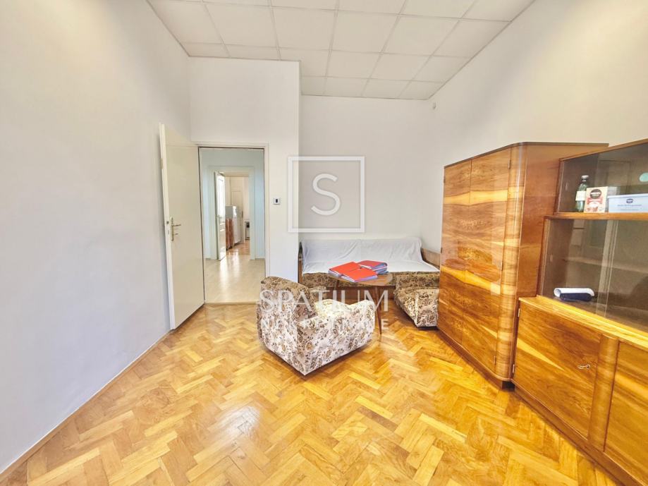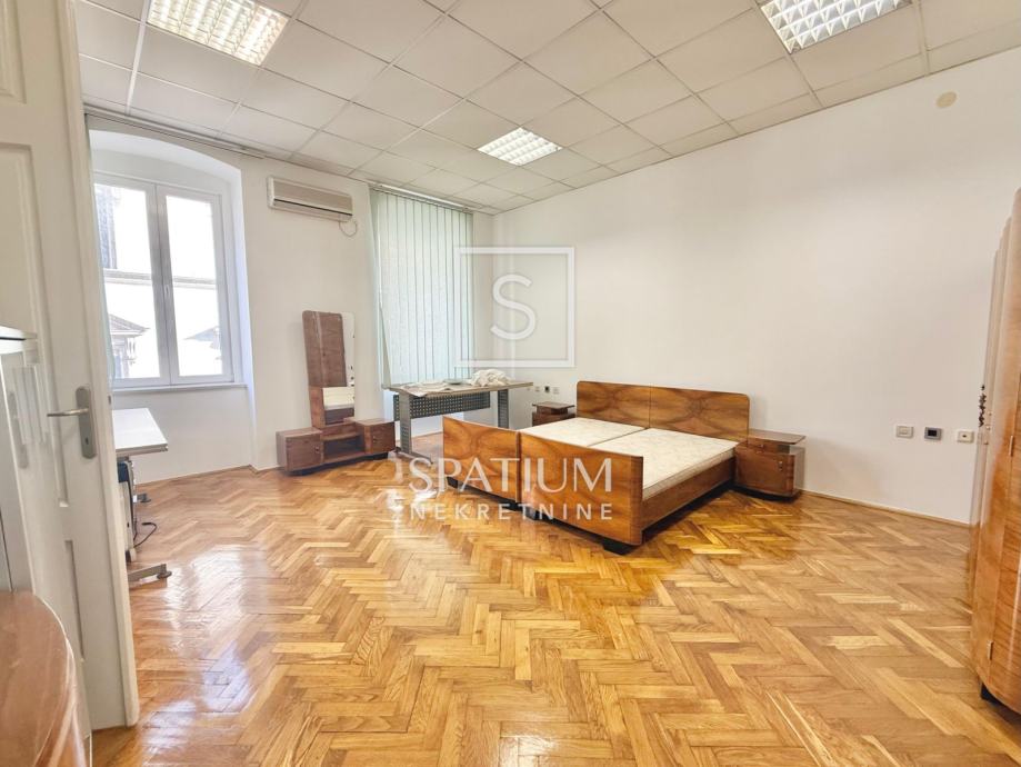 Stan se sastoji od tri velike i prostrane sobe, ostave, velike kupaonice te otvorenog centralnog dijela. Nekretnina je trenutno uređena kao poslovni prostor (ured), no lako se može preurediti u obiteljski stan ili podijeliti u tri zasebne stambene jedinice, što je čini posebno zanimljivom za investitore.