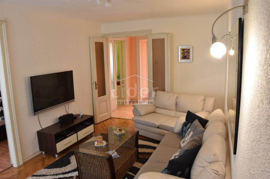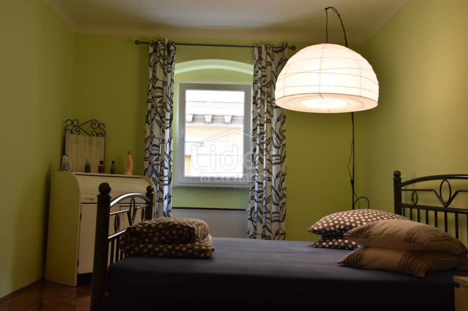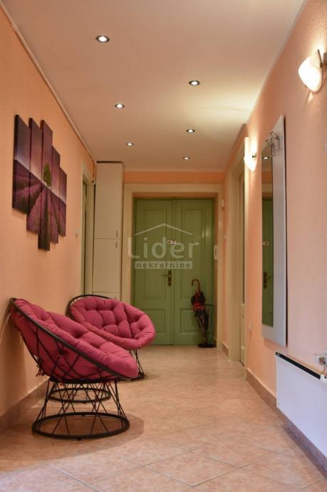 Predivno preuređen stan u strogom centru, na četvrtom katu, lijepo održavane zgrade. Sve instalacije su u potpunosti nove. Stan je trenutno u najmu, te je izvrstan i kao investicija tog tipa. Od stana se, tehnički mogu dobiti dvije stambene jedinice te je iz tog razloga još zanimljiviji. Hodnik je dovoljno prostran, te se iz njega izvelo ugodno mjesto za druženje. Grijanje je na klimu i Valiant radijatore. Iznad stana je još i potkrovlje, a krov je u dobrom stanju.