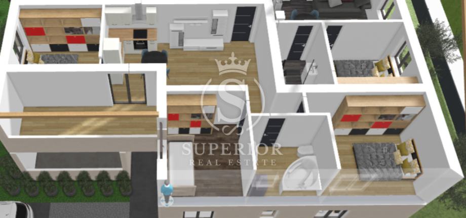 U ovoj fazi izgradnje postoji mogućnost izmjene rasporeda prostorija, što kupcu omogućuje dodatnu fleksibilnost, budući da arhitekt još nije dovršio završni dio projekta.