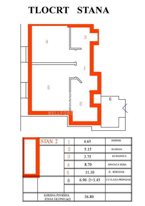 Rijeka- Sušak- stan 1S+DB, ukupne korisne površine 36.80 m2.