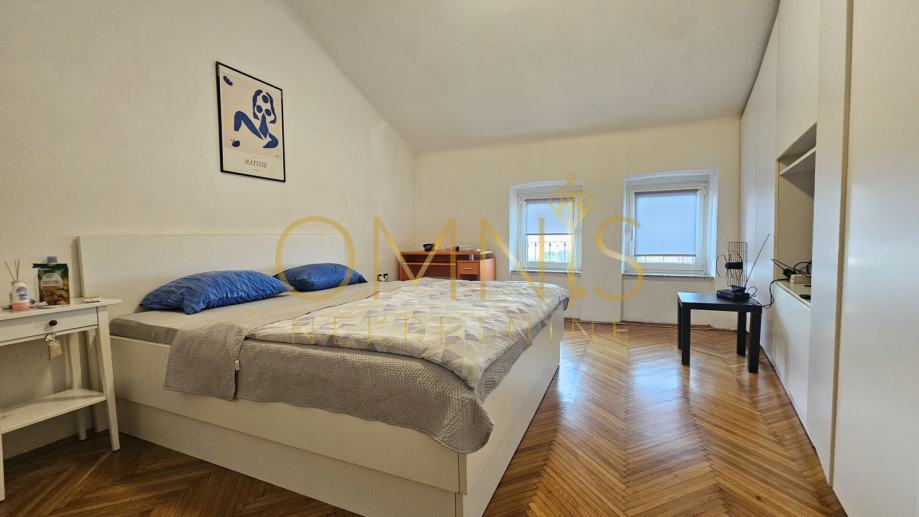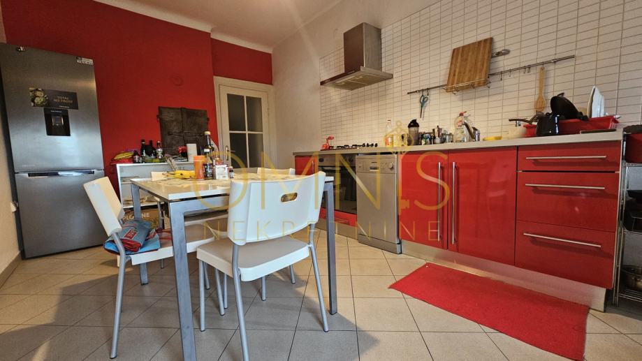 Prodaje se stan u blizini centra grada površine 86 m2. Stan se sastoji od tri prostrane sobe od kojih jedna može biti u funkciji dnevnog boravka, kuhinje s blagavaonom, kupaone i hodnika. Stan je uređen, postavljena je PVC stolarija i trenutno je u funkciji dnevnog najma. Iz kuhinje i jedne sobe pruža se pogled na more i grad. Grijanje na klimu. Odlična investicija.