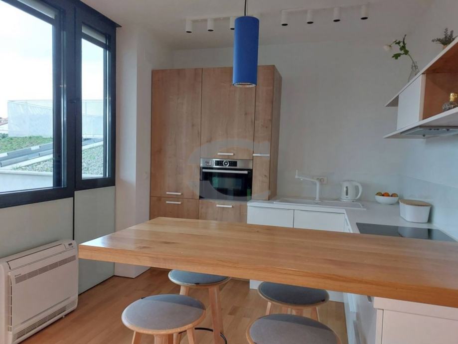 Iznajmljuje se luksuzan, u potpunosti namješten stan, opremljen vrhunskim Bosch uređajima i Daikin dizalicom topline s podnim grijanjem u svim prostorijama i fancoilerima za hlađenje.
