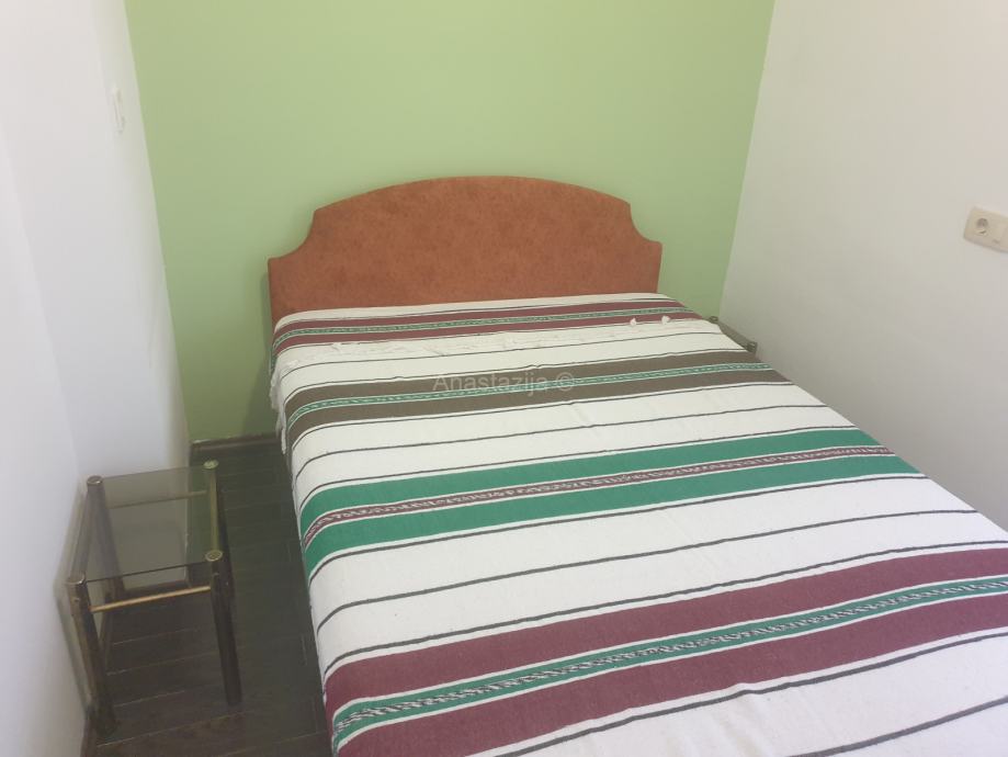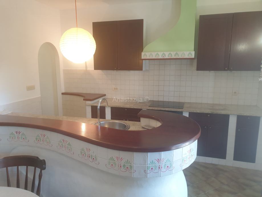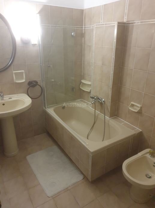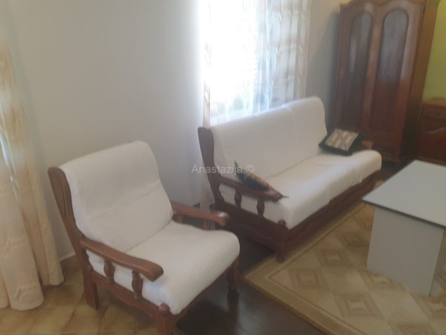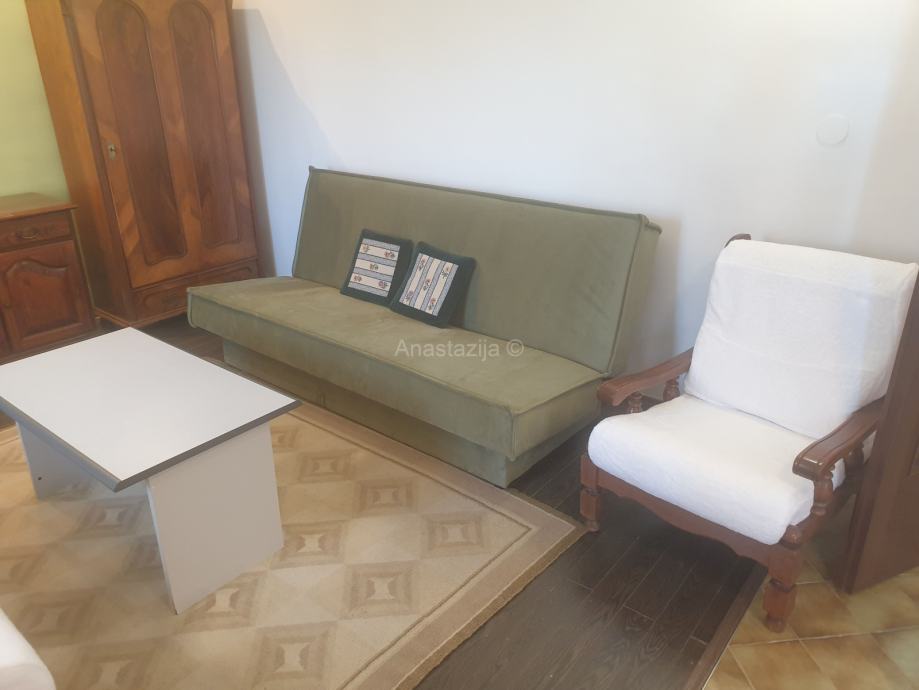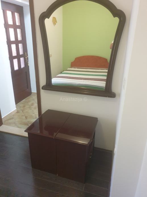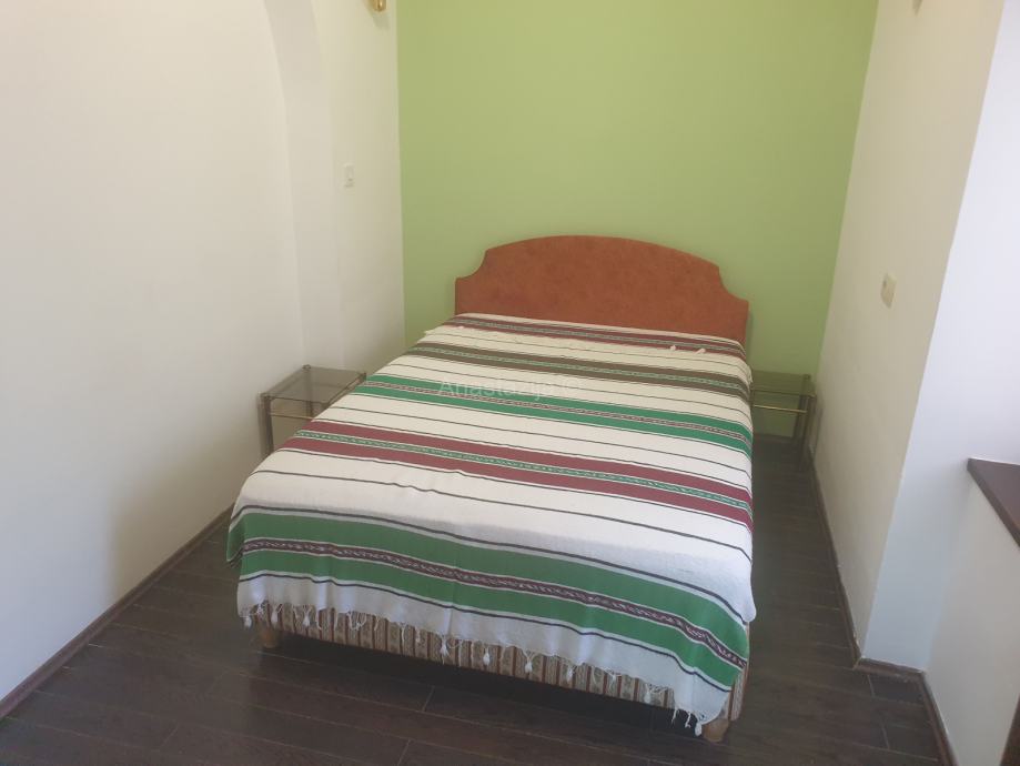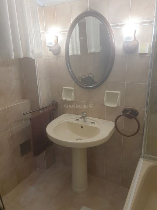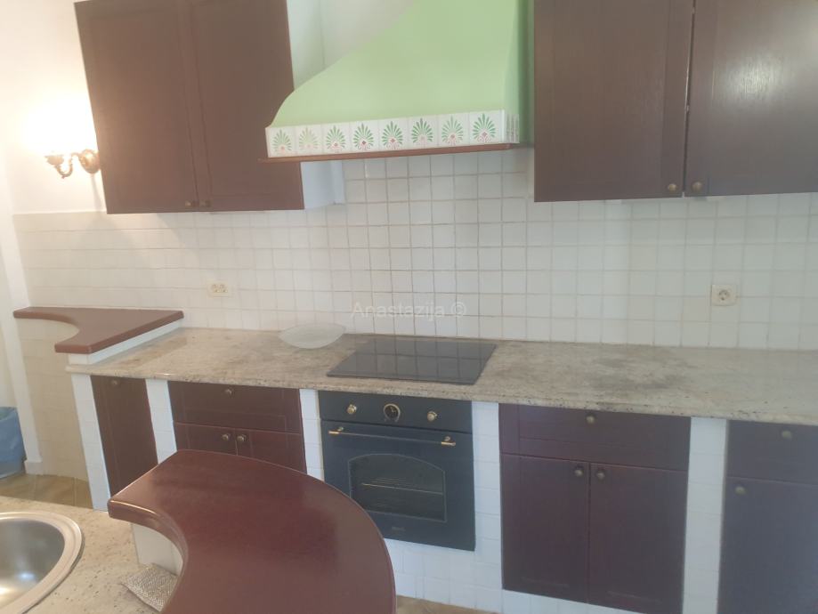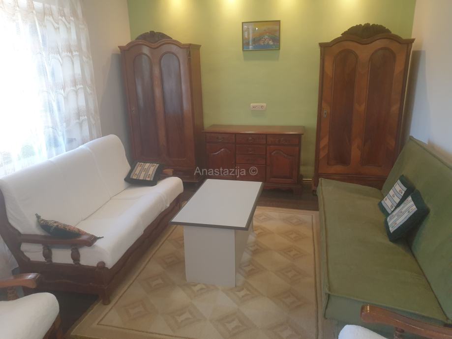 Odličan stan u prizemlju obiteljske kuće s dvorištem (terasom) iznajmljujemo. Dnevni dio, prostran i svijetao, sastoji se od kuhinje i dnevnog boravka koje razdvaja umjetnički dizajniran unikatni šank. Iz dnevnog dijela izlazi se na dvorišnu terasu okruženu zelenilom koje stanarima pruža potpunu intimu. U spavaćoj sobi nalazi se francuski krevet. Spavati se može i u dnevnom boravku. Kupaonica ima ležeću kadu s pokretnom staklenom zaštitom. Stan je namješten stilskim antiknim namještajem. Opremljen je osnovnim uređajima (štednjak, hladnjak, perilica rublja, perilica suđa,...). Cijena najma stana je 600 EUR + utrošak struje. Komunalije i ostale naknade uključene su u cijenu najma. Plaća se polog u visini 1 najamnine, te agencijska naknada.