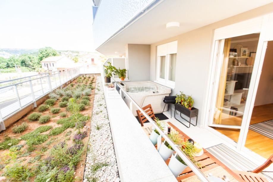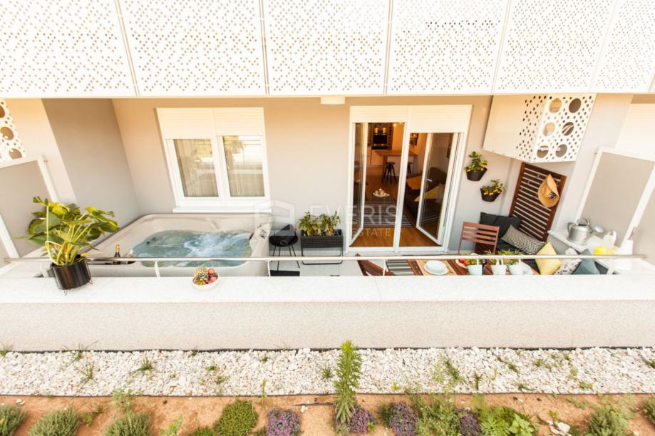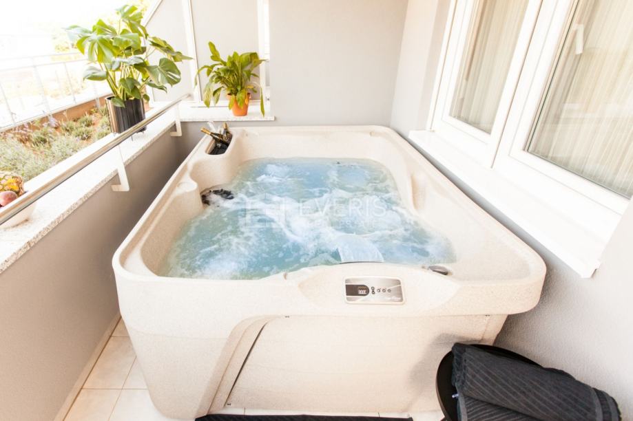 Na terasi se nalazi jacuzzi za uživanje. Nekretnina je kompletno namještena te spremna za useljenje.