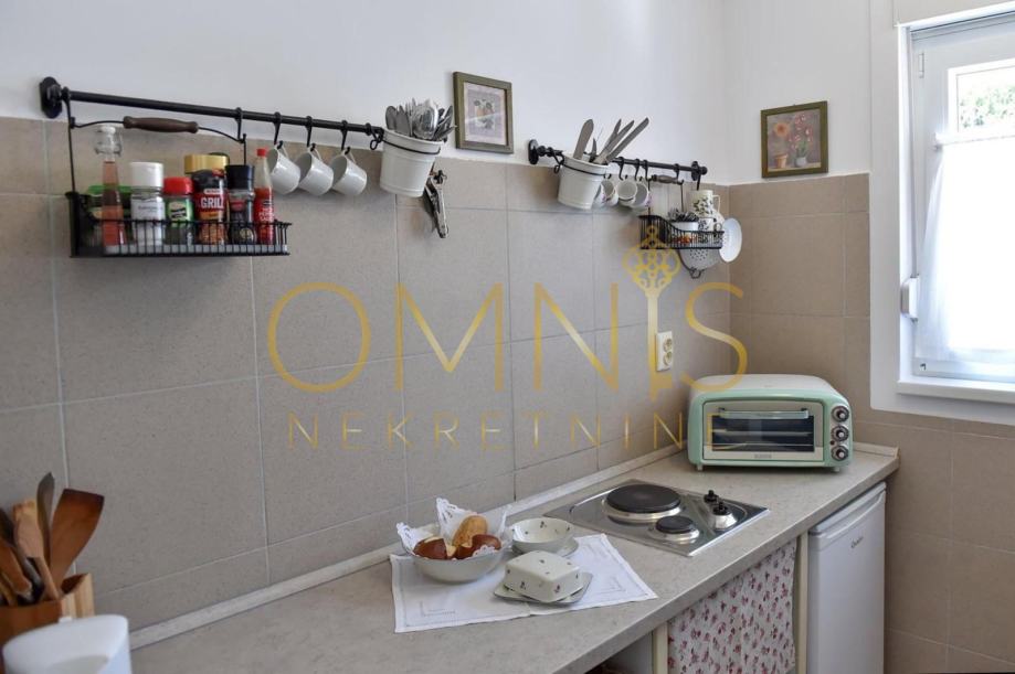 Sastoji se od dnevnog boravka, dvije spavaće sobe, kuhinje s blagavaonom, kupaone, predsoblja i saune. Grijanje je na klimu i centralno na gradski plin. Stanu pripada parkirno mjesto na okućnici.Postoji mogućnost korištenja ljetne kuhinje i roštilja.
