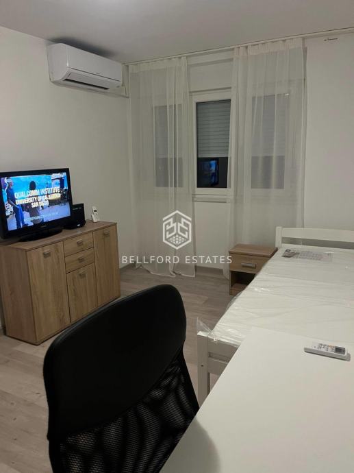 Stan se sastoji od kuhinje s blagovaonom, dvije sobe, kupaonice, hodnika i balkona. Svaka soba ima vlastiti klima uređaj za potpunu privatnost. Stan je kompletno adaptiran 2025. godine te je ovo prvi najam nakon adaptacije.