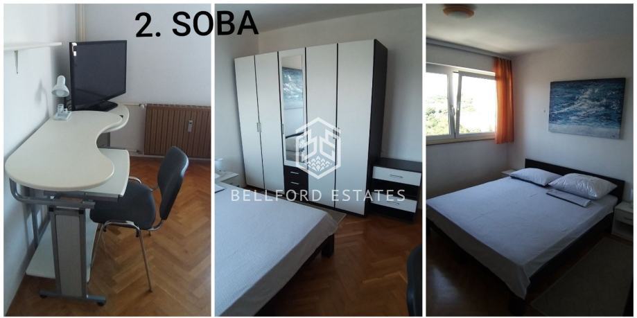 Stan se sastoji od od tri velike, svijetle sobe . Imaju spavaći i dnevni dio, dvije imaju TV i jedna ima balkon sa pogledom prema moru. Kuhinja je potpuno opremljena novim suđem i posuđem, hladnjakom-ledenicom, novom perilicom posuđa, novom staklokeramičkom pločom te mikrovalnom pećnicom.U kupaonici se nalaze perilica rublja i nova sušilica rublja. Ostava ima dodatni prostor za odlaganje i velike ormare za cipele.