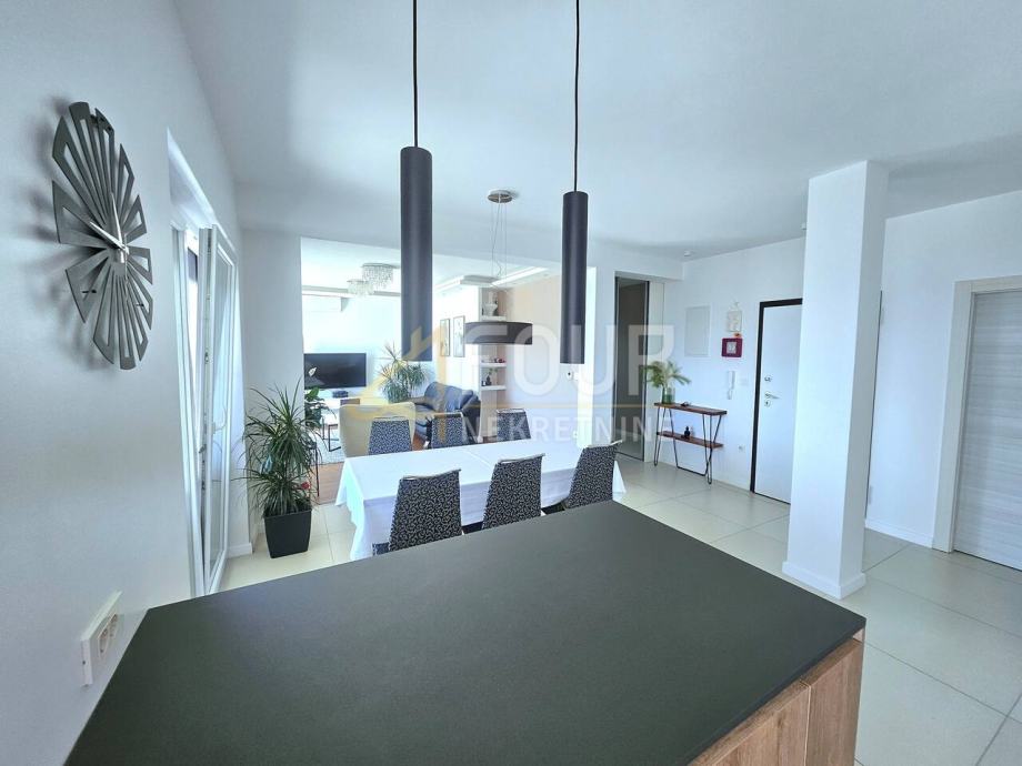 Na Turniću se prodaje iznimno kvalitetan i rijedak stan u novijoj stambenoj zgradi, koji predstavlja savršen spoj komfora, funkcionalnosti i moderne gradnje. Riječ je o prostranom trosobnom stanu s dnevnim boravkom, ukupne neto površine 114,75 m2, kojem dodatno pripada tavanski prostor površine 37,35 m2, spremište u prizemlju te dva vanjska parkirna mjesta.