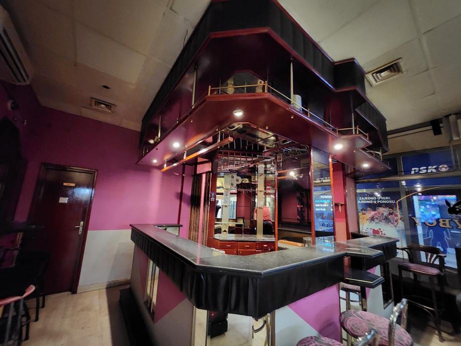 Caffe bar površine 36 m2 ima sanitarni čvor i malo spremiše iza šanka te zasebno skladište od 9 m2.