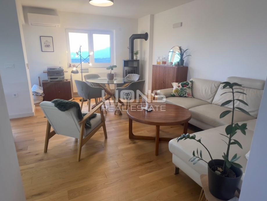 Na prodaju je moderan i kvalitetno opremljen stan u novogradnji iz 2022. godine, smješten u mirnom dijelu Viškova (Marčelji), ukupne površine 73,2 m², od čega 9 m² otpada na natkriveni balkon s panoramskim pogledom na more i Učku.