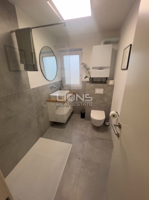 Podovi su obloženi parketom od hrasta (osim u kupaonici), a grijanje je etažno na plin, uz dodatnu opciju grijanja na kamin na drva, što stanu daje poseban ugođaj.
