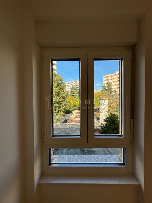 Stan je potpuno adaptiran godine 2024., tako da ima sve nove električne i vodovodne instalacije, trojslojna stakla na prozorima i klimatiziran sustav grijanja, s podnom grijadbom u kupaonici. Balkon ima površinu od 7,5 metara četvornih, na njega se izlazi iz dviju soba. Stanu pripada podrum od 5 m četvornih. Nekretina pruža sve što je potrebno obitelji, no moguće ju je i iznajmiti zbog blizine fakulteta te koristiti kao poslovni prostor zbog dobre povezanosti sa svim bitnim sadržajima.