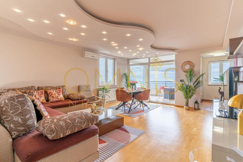 Iznajmljuje se prostrani dvosobni stan s dnevnim boravkom, površine 80 m², smješten u mirnom dijelu Zameta. Stan je južno orijentiran, što mu omogućuje obilje prirodne svjetlosti, a s terase se pruža pogled na more i Kvarner. Raspored prostorija uključuje dvije spavaće sobe, dvije moderne kupaonice, prostrani dnevni boravak s kuhinjom, te ostavu.