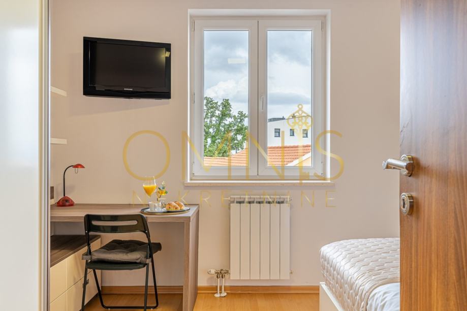 Stan je potpuno opremljen za ugodan boravak, centralno grijanja na plin je u cijelom stanu, te ima i klima uređaj. Uz stan dolazi jedno parkirno mjesto, a zgrada u kojoj se stan nalazi ima lift.