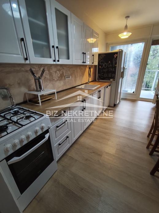 - kuhinje (kuhalište na gradski plin, veliki dvostruki frižider, perilica suđa, izlaz na balkon i smočnica)