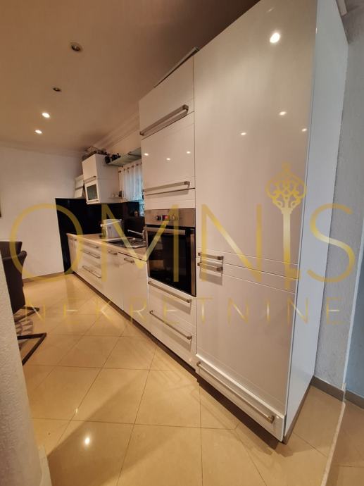 Kuhinja je rađena po mjeri s kvalitetnim aparatima. U hodniku su garderobni ormari do plafona.Stan je novouređen s novim instalacijama struje i vode.