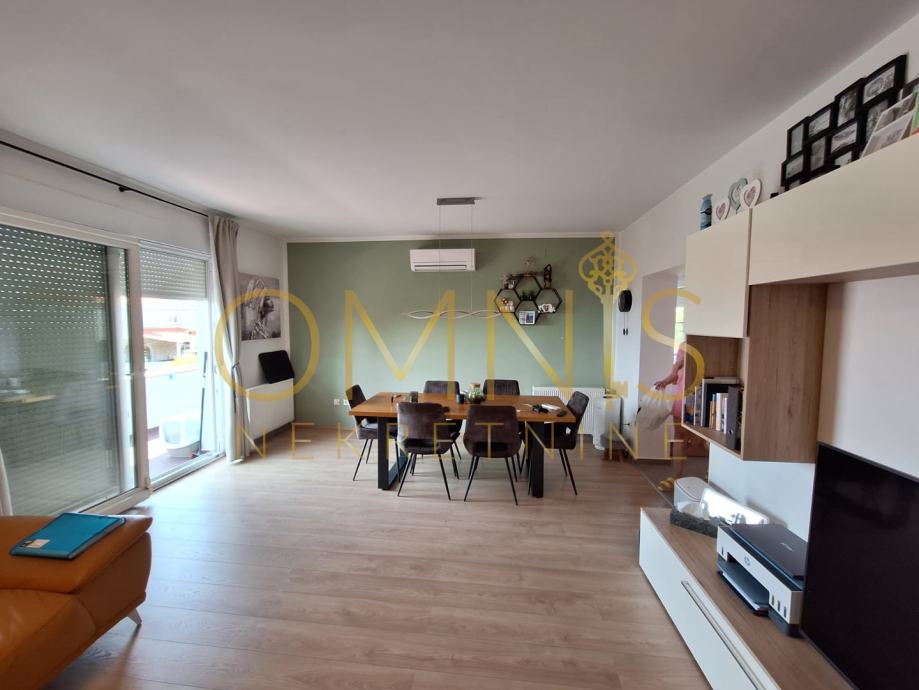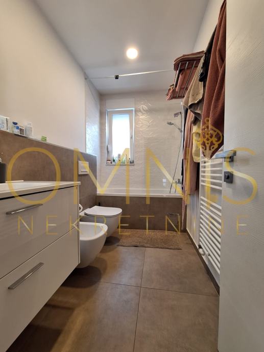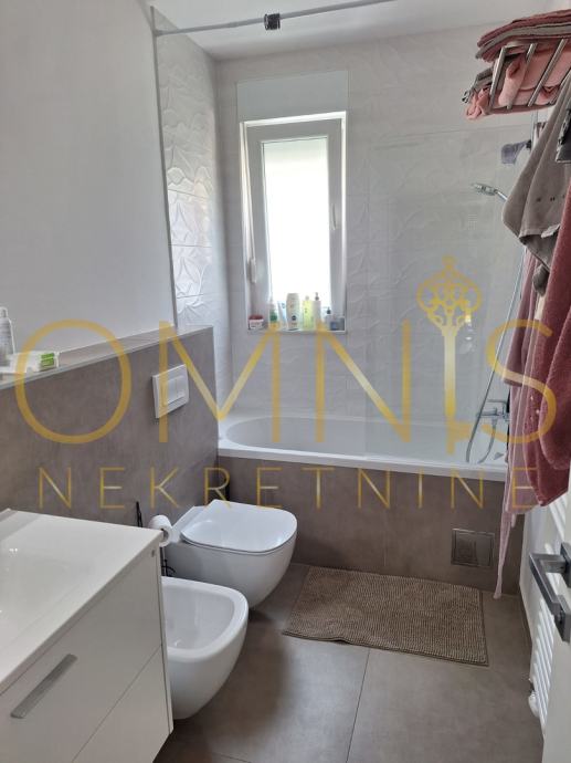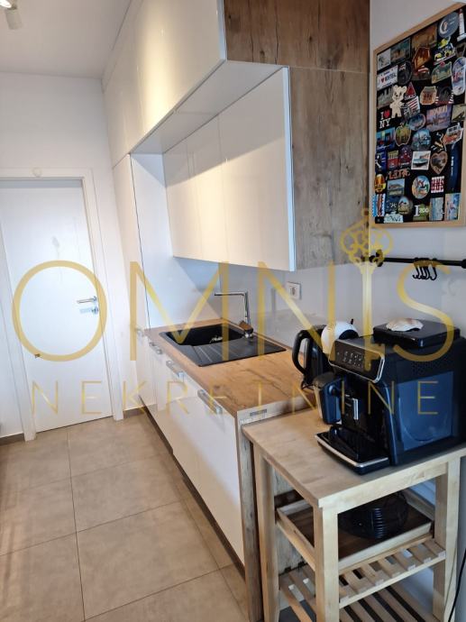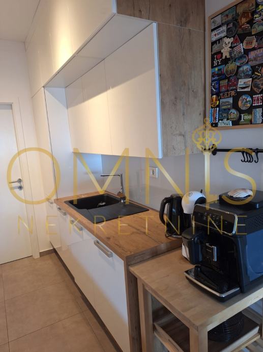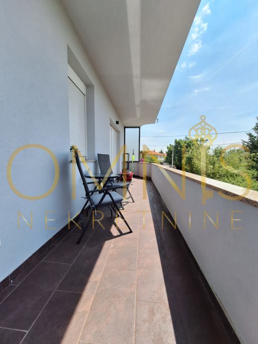 Prodajemo odličan stan u zgradi novije gradnje s ukupno pet stanova. Stan se nalazi na prvome katu te se sastoji od open space dnevnog boravka s blagavaonicom, kuhinje, ostave( utilitya), dvije spavaće sobe, hodnika, kupaonice s sanitarnim čvorom, sanitarnog čvora zasebno te prostranog balkona dužinom cijelog stana. Sa balkona se pruža lijepi pogled na more i prirodu. Stan je kompletno uređen i namješten te se kao takav i prodaje. Stavljena je Dan Kuchen kuhinja, kuhinjski i kupaonski aparati su prvoklasni, dvije klime te ostatak namještaja. Također stanu i pripada i parkirno mjesto u okućnici zgrade. Odlična nekretnina nedaleko od svih sadržaja, idealna za obitelj no opet pogodno za iznajmljivanje. Čista i uredna papirologija.