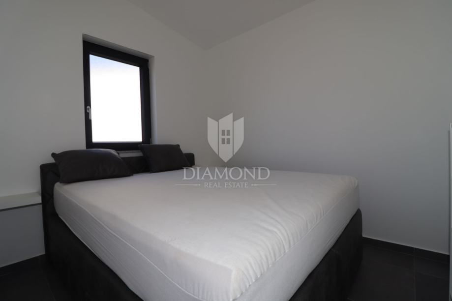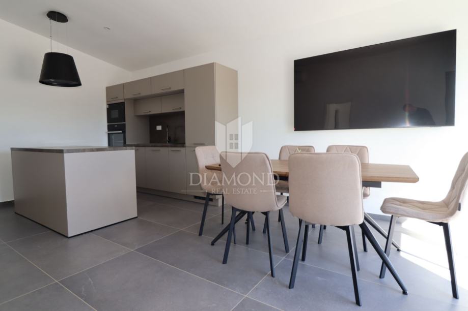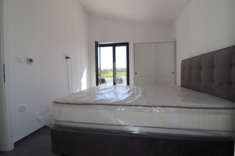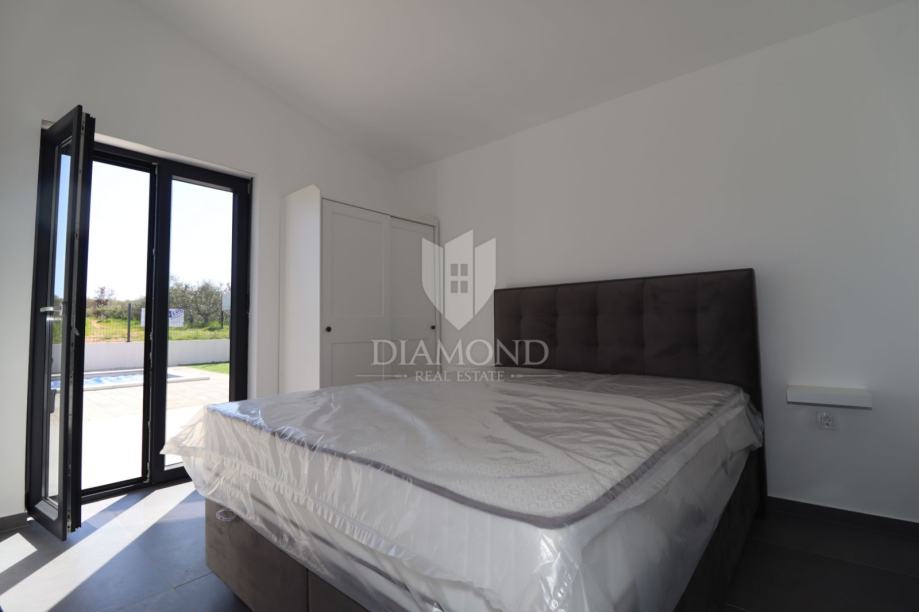Moderna prizemnica s vlastitim bazenom i privatnim parkiralištem smještena je u mirnom okruženju, okružena istarskim zelenilom. Kuća se sastoji od ulaznog hodnika koji vodi u prozračan open space prostor s kuhinjom, blagovaonicom i dnevnim boravkom. Iz dnevnog dijela pristupa se spavaćim sobama, dok se kupaonica nalazi u neposrednoj blizini.