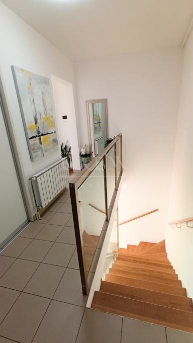 Stan, osim što ima predivan pogled na Zagreb i što se nalazi u ugodnom susjedstvu na izuzetno dobroj lokaciji povezanoj sa svime, ima i izuzetno funkcionalan raspored na dvije etaže: