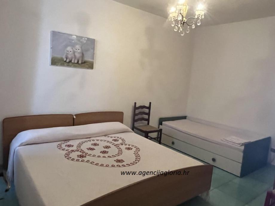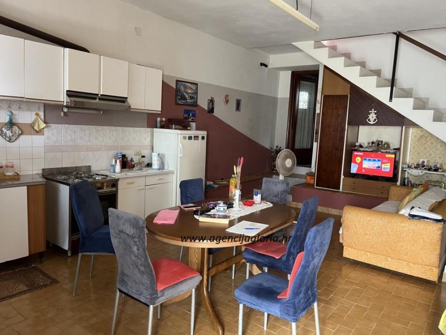 RIJETKOST U PONUDI - OTOK OŠLJAK-KUĆA U NIZU! Prodaje se kuća katnica na otoku Ošljaku sa otvorenim, prekrasnim panoramskim pogledom na more udaljena od mora svega 30-ak metara zračne linije. Kuća je izgrađena na terenu površine 407m2, u nizu je, a sastoji se od ukupno dvije etaže: prizemlje i kat. Prizemlje se sastoji od velike jugozapadno orijentirane vanjske terase, kuhinje sa dnvenim boravkom, , prostorije koja se koristi kao skladište i malog wc-a. Unutarnje stubište vodi na kat koji se sastoji od četiri komforne spavaće sobe, terase sa panormaskim pogledom i dvije kupaonice. Kuća je održavana i odmah useljiva. Idealna za odmor daleko od turističke gužve i vreve.