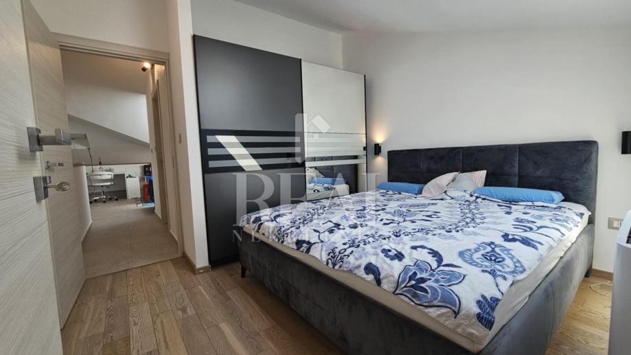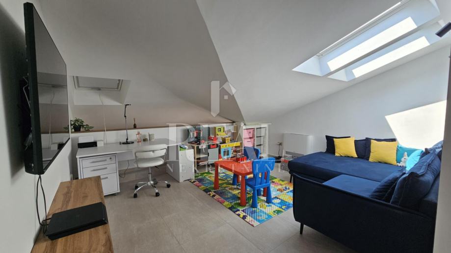 Unutarnjim stepeništem se dolazi u galerijski prostor (oformljen kao radni dio i dječja igraonica),te hodnik vodi prema još jednoj kupaonici i velikoj spavaćoj sobi sa velikim spremištem.