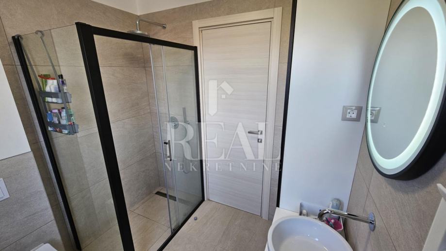 U vlasništvu stana su i dva natkrivena parkirna mjesta (sa punjačem za elektro vozila),te prostrana konoba.