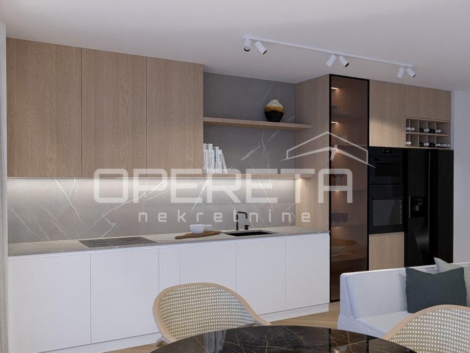 Zgrada će imati dizalo, podzemne garaže i privatne bazene na terasama svih stanova. Za gradnju će se koristiti visokokvalitetni materijali, koji garantiraju dugotrajnost, visoku energetsku učinkovitost i udobnost. Oprema uključuje podno grijanje u svim prostorijama, dizalice topline i sustav klimatizacije, osiguravajući optimalne uvjete boravka tijekom cijele godine.
