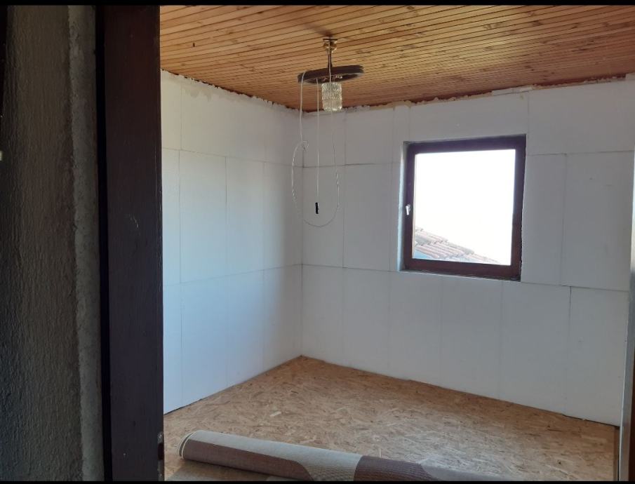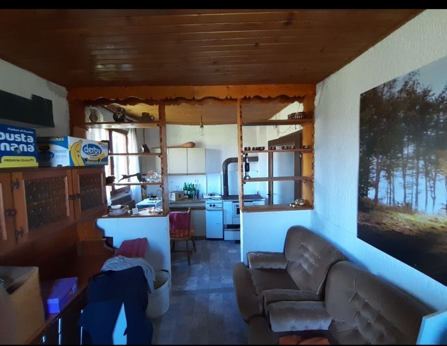 Sastoji se od podruma, sobe, kuhinje/dnevne sobe, hodnika i jedne prostorije sa drugim ulazom te nezavršenog tavana.