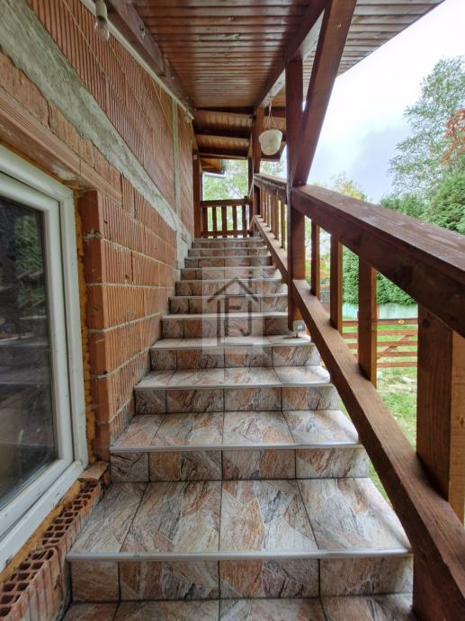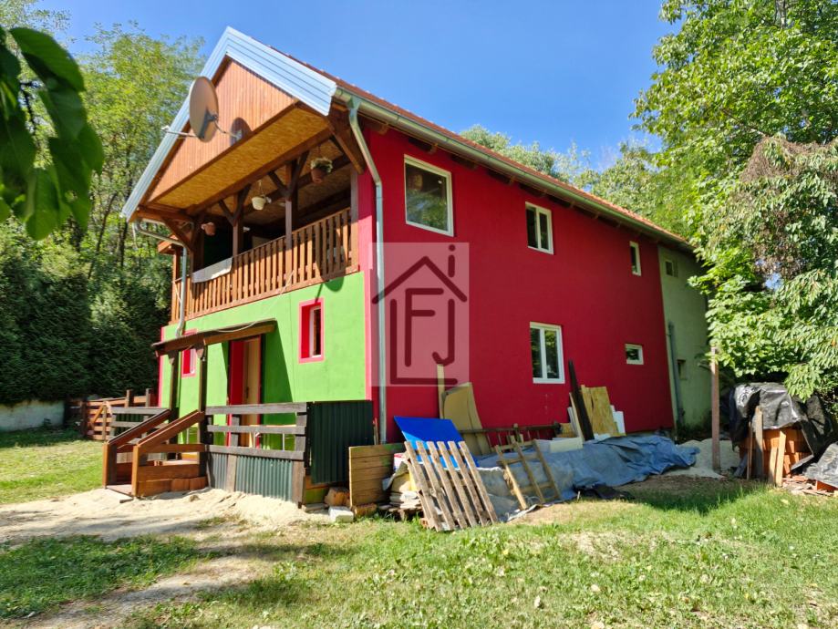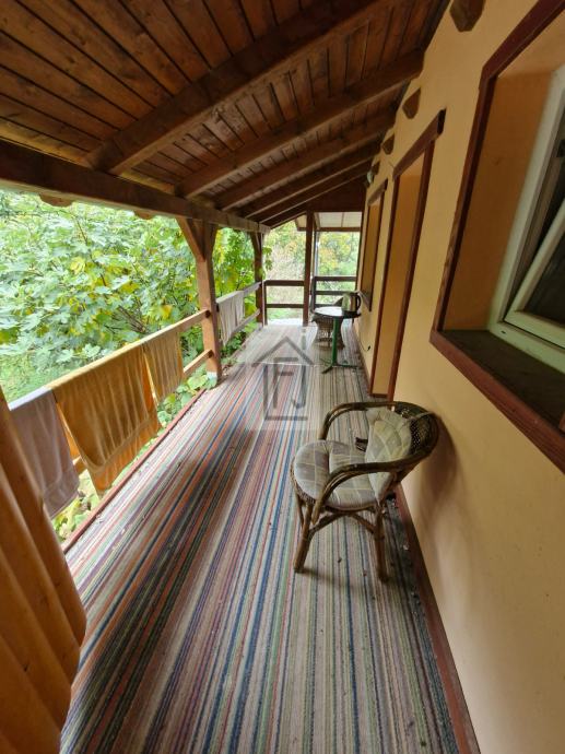 Na skrivenom mjestu u Robadju, ponad Štrigove, na prekrasnom platou iznad šume, prodajemo novogradnju nastavljenu na postojeću manju vikendicu. Kuća se uređuje na dnevnoj bazi i stvarno stanje može izgledati trenutno drukčije od onog na slikama. Krasi ju diskretan pogled na Štrigovu, mir, tišina i svježi zrak. Susjedi nisu blizu, stoga imate zajamćeni mir. Kuća je nedovršena, nastavljena na postojeću vikendicu od 45 m2. Sadašnje dimenzije kuće su 15x7 metara. Sastoji se od tri zasebna stana, zasebni ulazi, svaki sa svojom kupaonom i zasebnim WC-om. Ispod vikendice je vinski podrum. Kuća je djelomice namještena a donji dio treba urediti, a trenutno se uređuje fasada na kući. Novom vlasniku ostaje puno mogućnosti za dovršetak gradnje i uređenje prema vlastitom ukusu i želji. U blizini kuće je izgrađena pećenjara. S druge strane imamo izgrađenu radionicu s vanjskim WC-om. Kuća je prikopćana na struju i vodu. Do kuće vodi asfaltirani put osim zadnjih nekoliko desetaka metara a taj dio je betoniran tako da se do nekretnine dolazi autom. Ostavite drveće i imat ćete romatnično gnijezdo blizu svih važnih stvari. A možete i srušiti nešto drveća i pred Vama je pogled na bajkovitu Štrigovu kakav se ne može novcem platiti. Priključak struje i vode, vlasništvo čisto i uredno, cerrtifikat u izradi jer je kuća nedovršena.