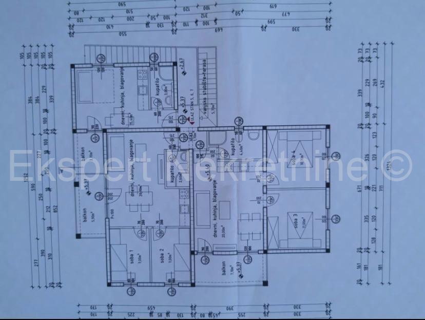 Rogoznica,tri stana ukupne površine 120 m2 u novogradnji na drugom(zadnjem)katu.Jedan stan se sastoji od dvije spavaće sobe,dnevnog,kuhinje i blagovaone,kupatila te balkona(55 m2),drugi stan se sastoji od dvije spavaće sobe,dnevnog,kuhinje i blagovaone,kupatila te balkona(45 m2),i treći studioapartman+balkon(22 m2).Svi stanovi imaju parking mjesto.Prodaju se u kompletu.Stan ima djelomičan pogled na more.Nalazi se 100 m od mora i plaže,te 400 m od centra.