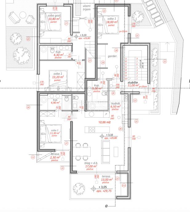 te natkrivene terase površine 15,30 m² idealne za uživanje u pogledu i zalascima sunca.