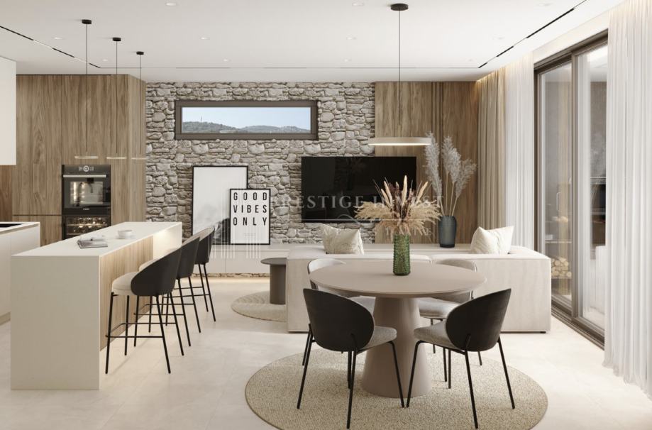 Prodaje se moderan i luksuzno opremljen dvosoban stan smješten na drugom katu ekskluzivne zgrade u Rogoznici, svega 70 metara od mora i plaže.