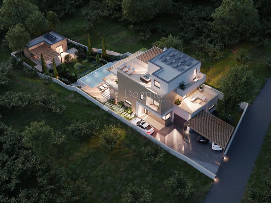 Vanjski prostor će dodatno obogatiti preljevni bazen od 41,55 m², predivan mediteranski vrt, vanjski roštilj i velika pergola za druženja.