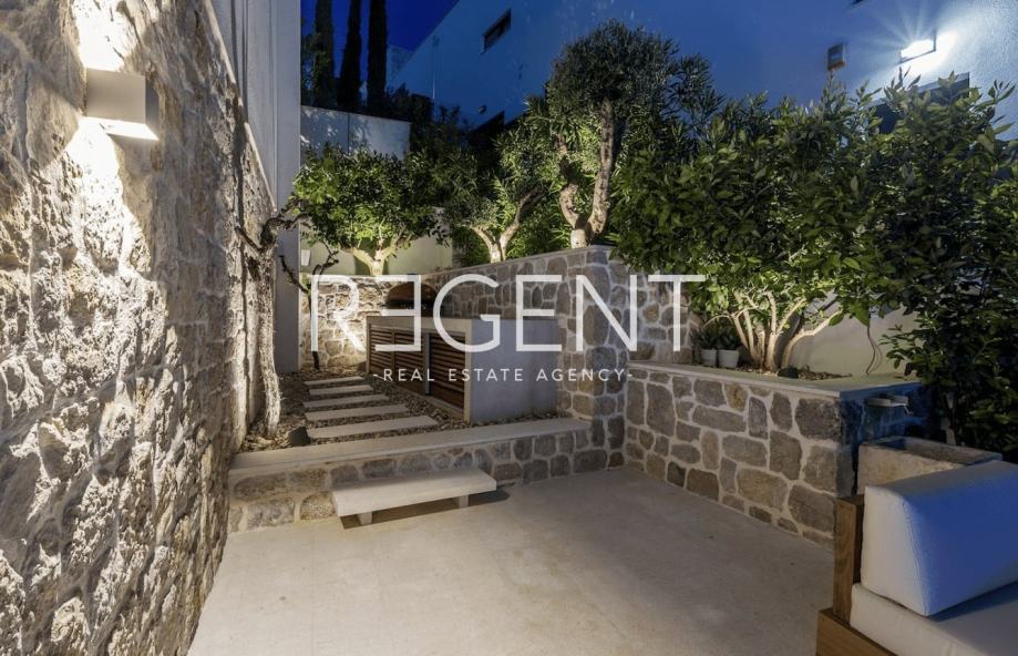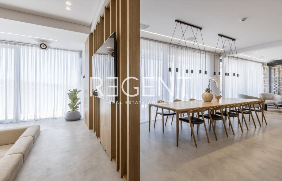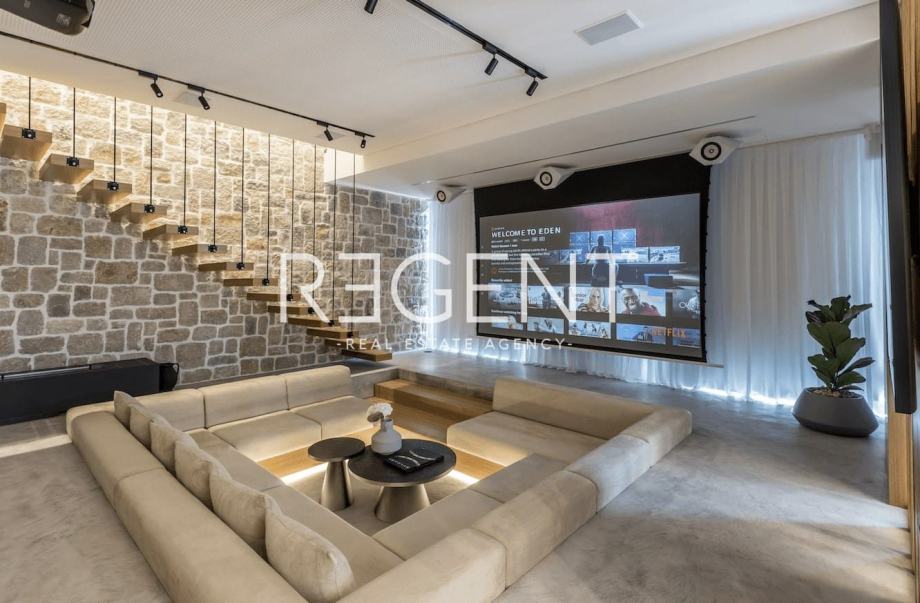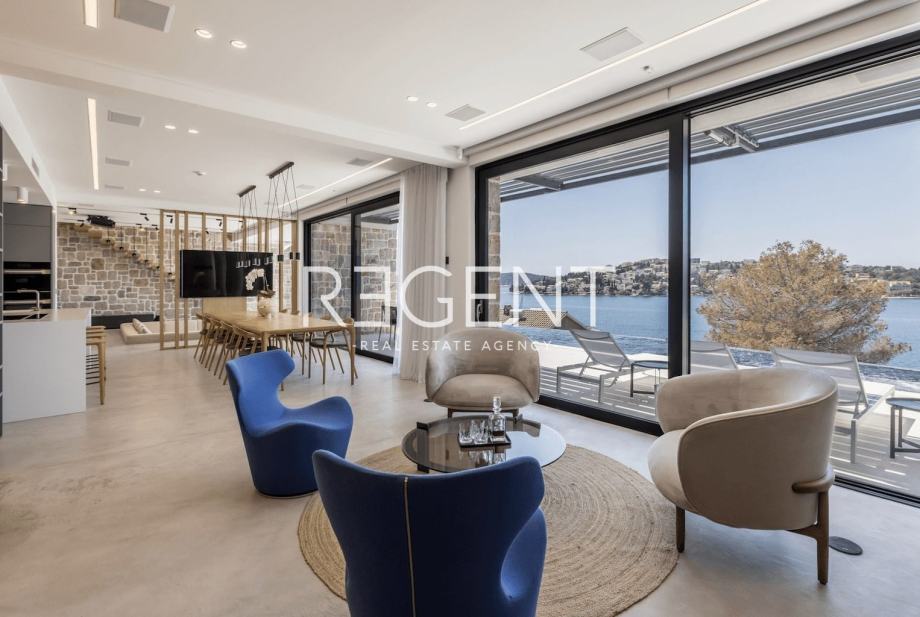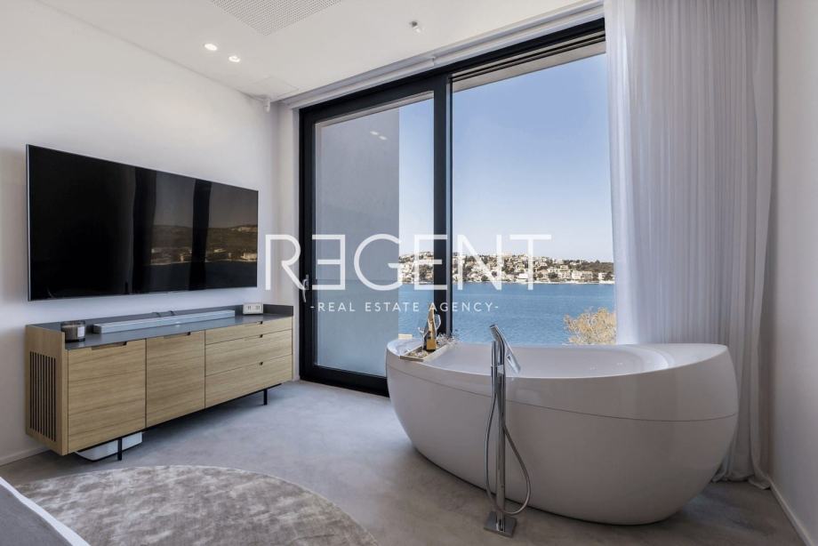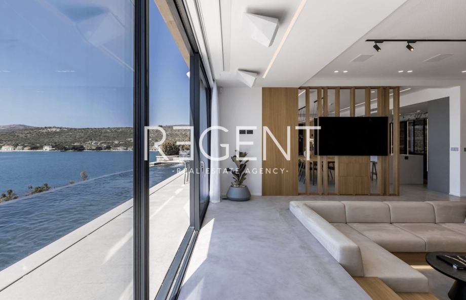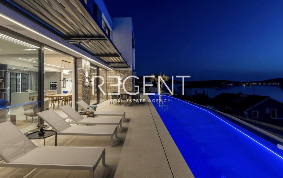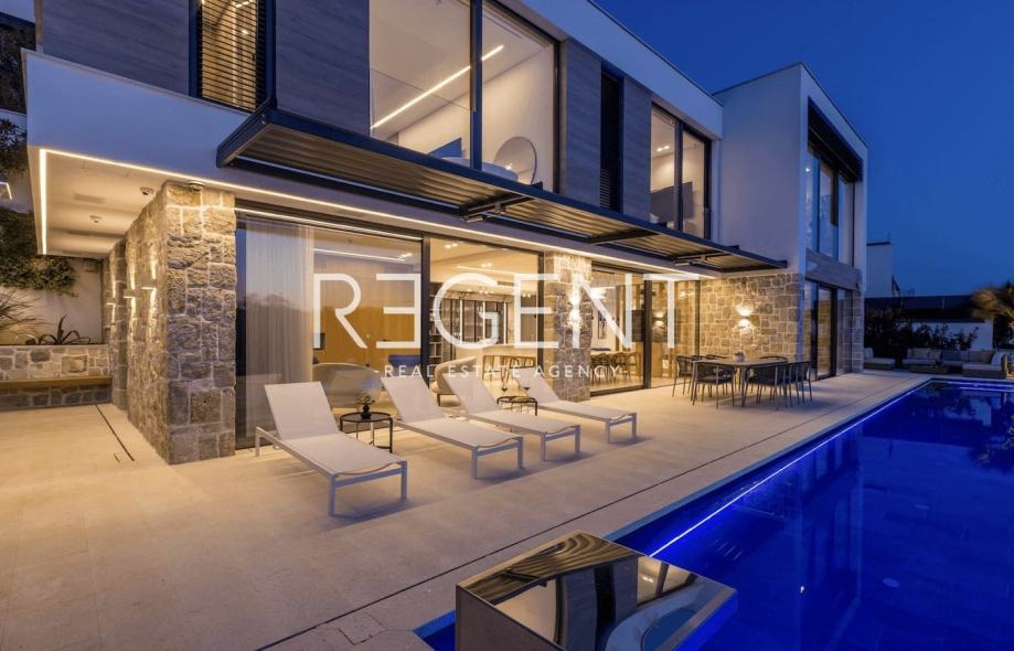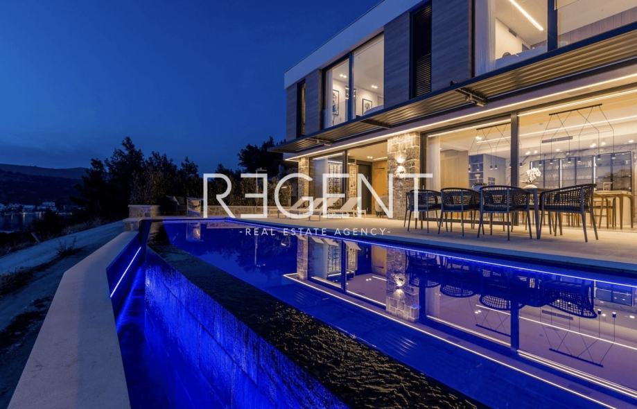 Ova ekskluzivna vila nalazi se u jednoj od najljepših lokacija između Splita i Šibenika, u mjestu Rogoznica. Vila je izrađena od najkvalitetnijih materijala i dizajnerskih detalja. Prostori su pažljivo dizajnirani i planirani kako bi se osigurala funkcionalnost i estetski privlačan unutarnji i vanjski dizajn. U interijeru dominira svijetla atmosfera zahvaljujući obilju prirodne svjetlosti koja struji na podove od izbijeljene hrastovine. Rustikalna okolina pretvorena je u jedinstvenu profinjenu arhitekturu kroz zapanjujuće i originalne radove lokalnih klesara. Iz svake spavaće sobe možete uživati u spektakularnom pogledu na kristalno plavo more i sunčane otoke. Minimalistički dizajn visokokvalitetnih kupaonica i potpuno opremljene kuhinje po mjeri s aparatima Miele pružit će sve što vam treba za luksuzno življenje. Svaki kutak vile je pažljivo dizajniran i opremljen od strane najboljih arhitekata i dizajnera interijera kako bi se zadovoljili i oni najzahtjevniji.