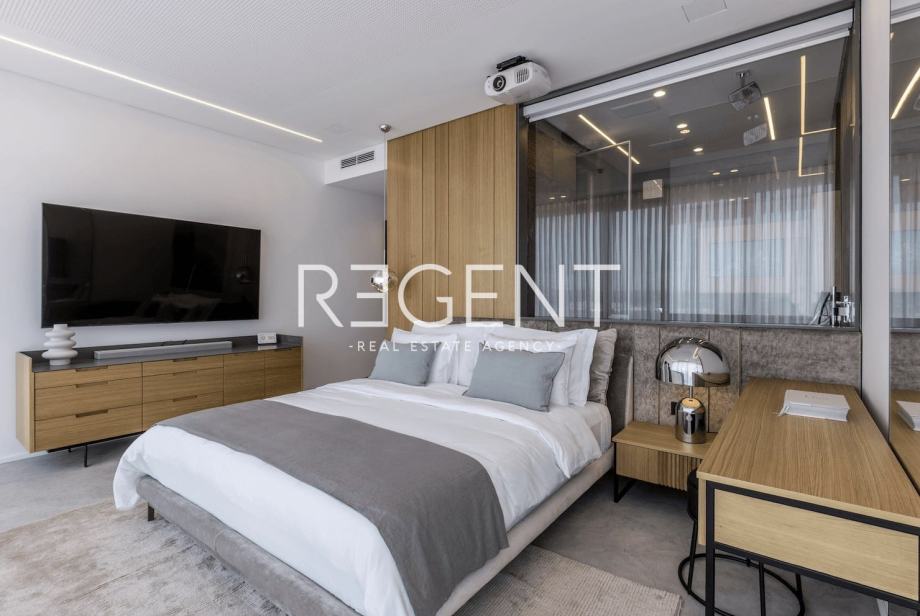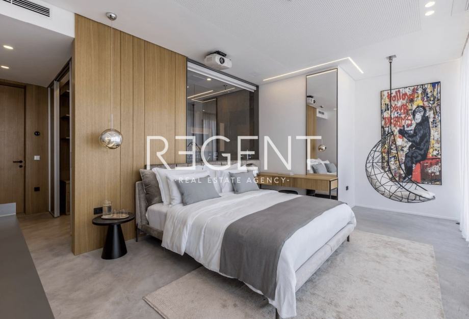 Unutarnji prostor ove vile prostire se na 340 m². Vila ima tri prostrane glavne spavaće sobe, svaka s vlastitom kupaonicom. Svaka soba je posebno dizajnirana kako bi pružila nesmetan pogled na more. Uz to, postoji još jedna kupaonica za goste kako bi se osigurala maksimalna privatnost i komfor.