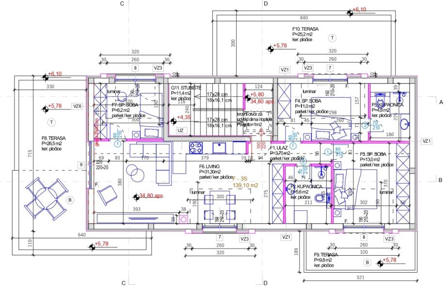 - Ukupna površina: 146,10 m² (uključujući terase i spremište)