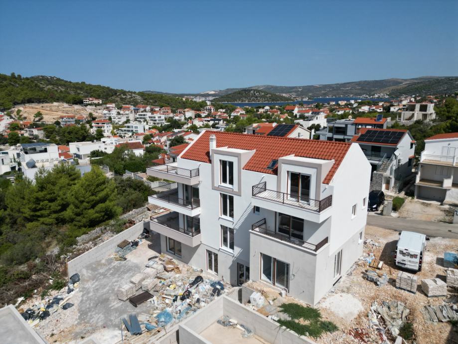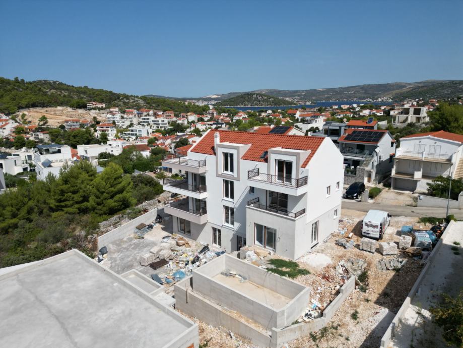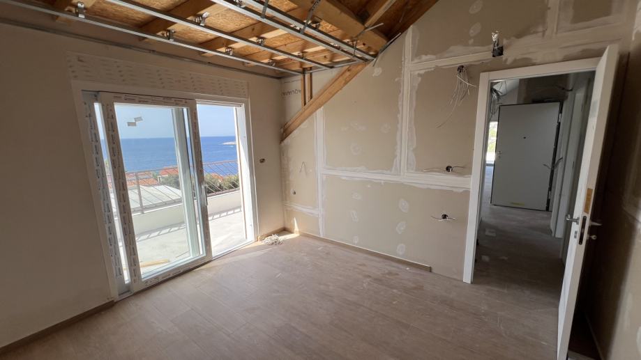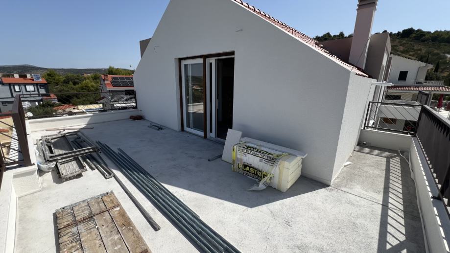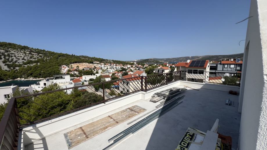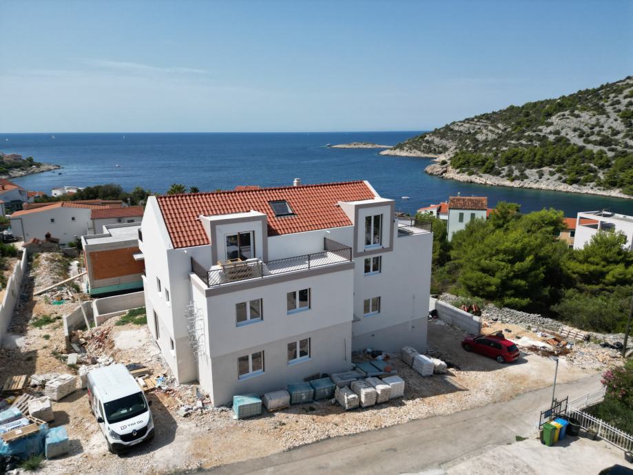 For sale: an exclusive penthouse apartment in the attic of a newly built residential building, located in one of the most beautiful and tranquil bays on the Adriatic – Stivašnica Bay, in the village of Ražanj, municipality of Rogoznica. This pristine location is ideal for those seeking privacy, peace, and crystal-clear sea, away from the tourist crowds yet close to all amenities.
