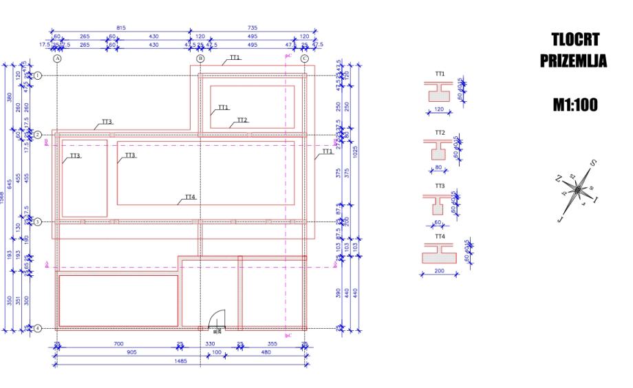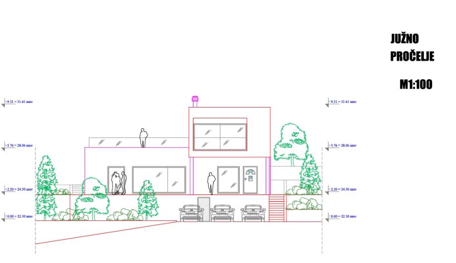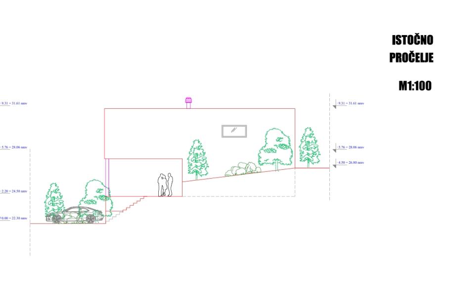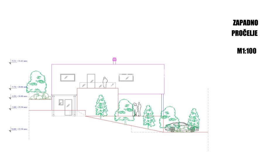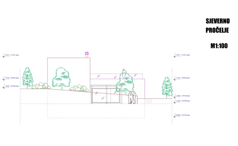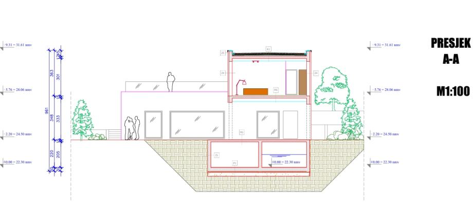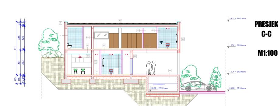 Ispred objekta se nalaze tri parkirna mjesta, a na istom nivou je smještene strojarnica i vodosprema (10m2).