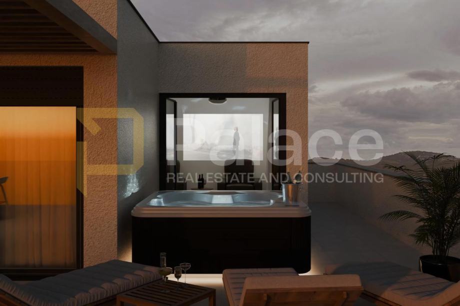 Krovna terasa s hidromasažnom kadom, vanjskim šankom i prostorom za druženje pod zvijezdama