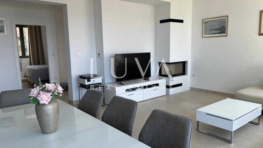 Posebna pažnja posvećena je kvaliteti i udobnosti: visoki stropovi (280 – 300 cm), aluminijska stolarija s troslojnim staklom i roletama, talijanske keramičke pločice vrhunske kvalitete, grilje na balkonima, multisplit Daikin sustavi grijanja i hlađenja u svim prostorijama, solarna elektrana s baterijama za akumulaciju struje te dva kamina. Kuća posjeduje i cisternu za vodu kapaciteta 20 m³, a energetski certifikat A+ potvrđuje visoku energetsku učinkovitost.