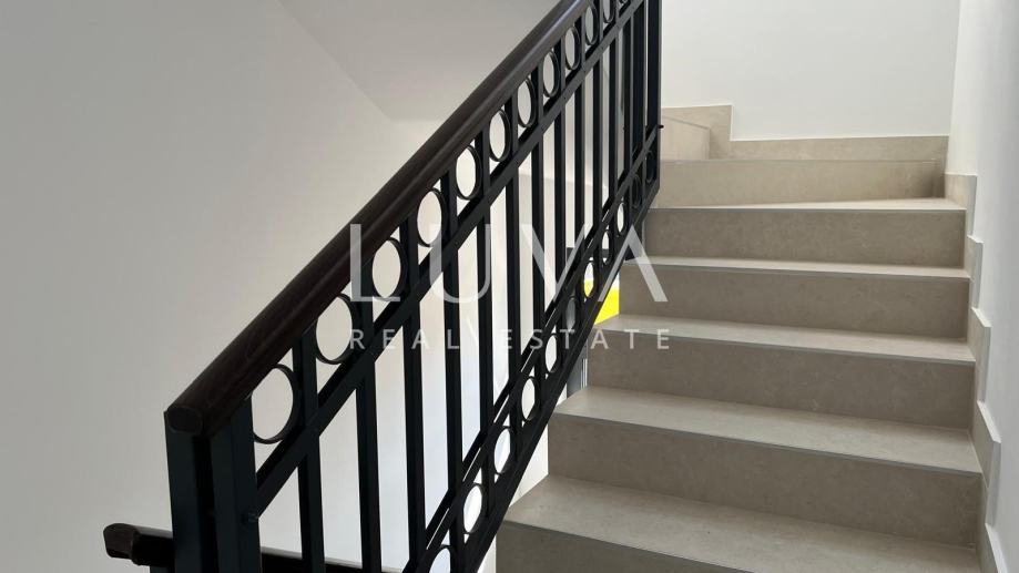 Suteren nudi multifunkcionalni prostor, kupaonicu, WC, garderobu te natkrivenu terasu od 22,75 m² s izlazom na bazen od 40 m² opremljen elektrolizom. U prizemlju se nalazi prostrana spavaća soba, dnevni boravak, kuhinja s blagovaonicom, kupaonica, WC i terasa od 22,75 m². Na prvom katu smještene su tri spavaće sobe, svaka s vlastitom kupaonicom, te terasa površine 11,35 m². Vili pripadaju i četiri vanjska parkirna mjesta.