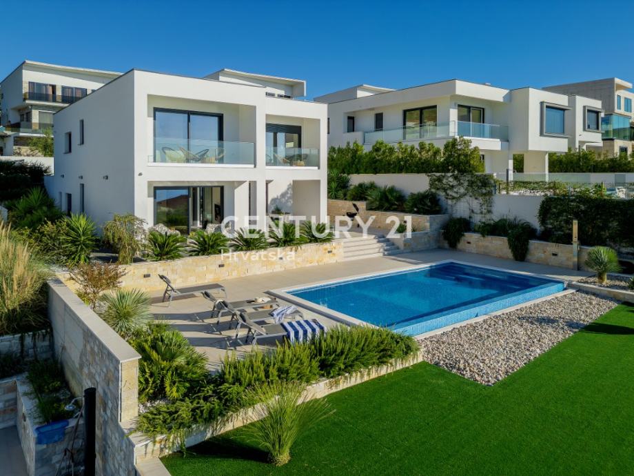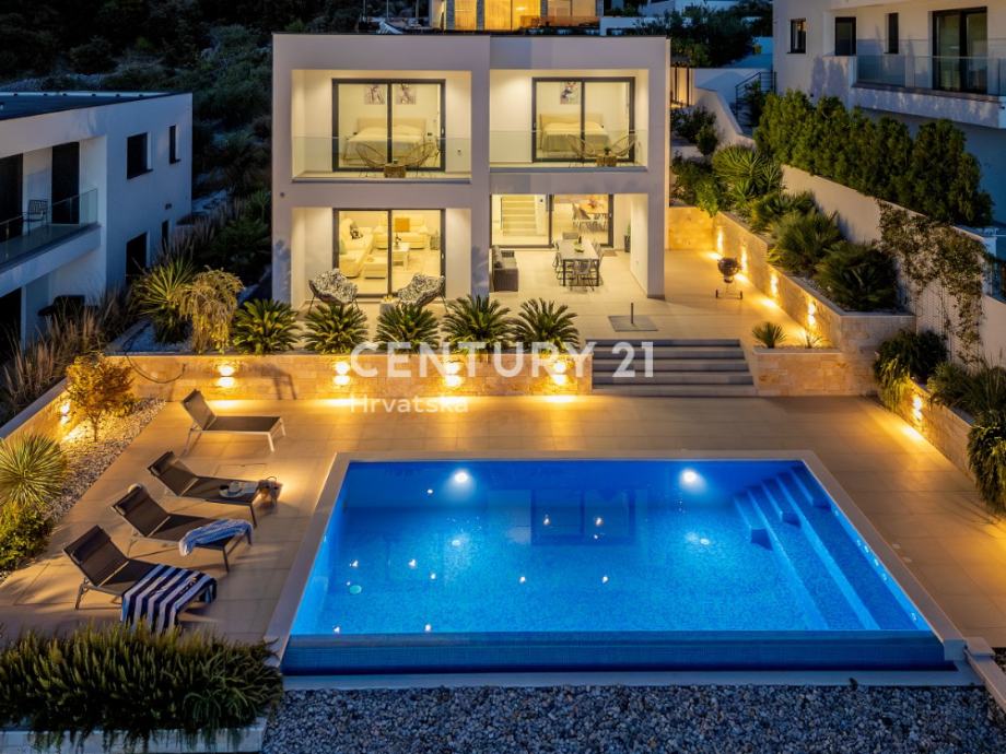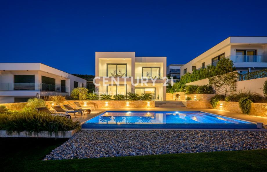 Na prodaju je vila sa bazenom površine 280 m2, smještena na parceli od 646 m2 u okolici Rogoznice, Ražanju. Izgrađena 2022. godine, ova moderna nekretnina odlikuje se kvalitetnom gradnjom i zapadnom orijentacijom, osiguravajući obilje prirodnog svjetla i prekrasan pogled na more.