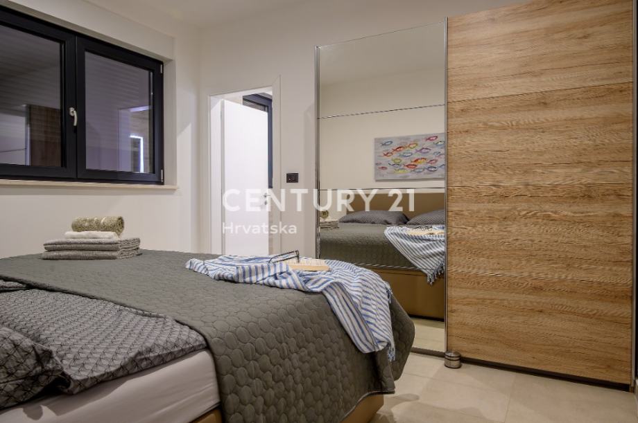Kuća se sastoji od četiri prostrane spavaće sobe, a pažljivo odabrana zapadna orijentacija dodatno naglašava osjećaj otvorenosti i svjetlosti. Poseban naglasak daje se terasi koji pruža idealno mjesto za opuštanje uz pogled na more i uživanje u sunčanim zalascima sunca.