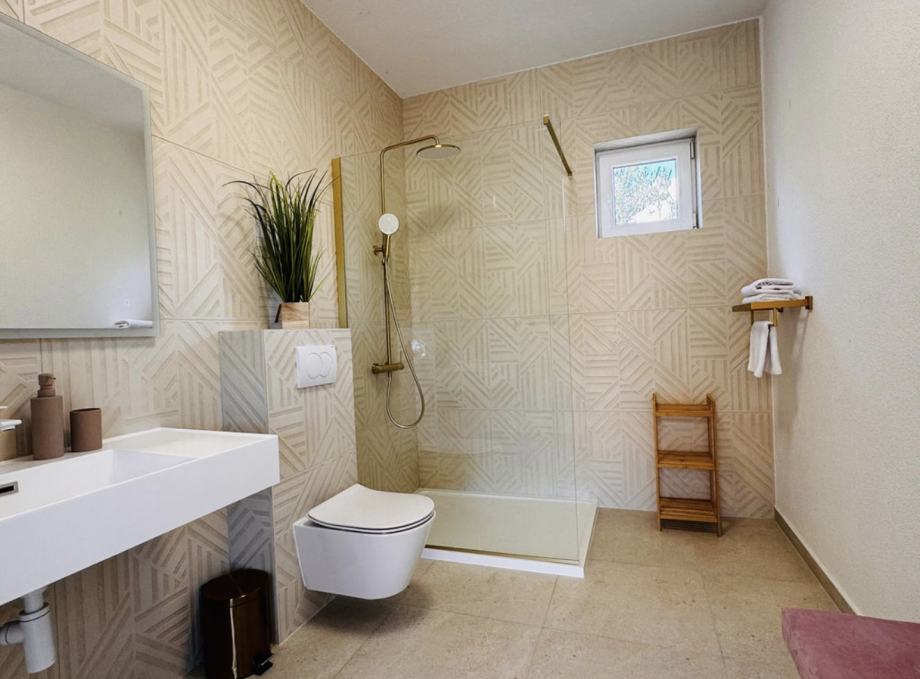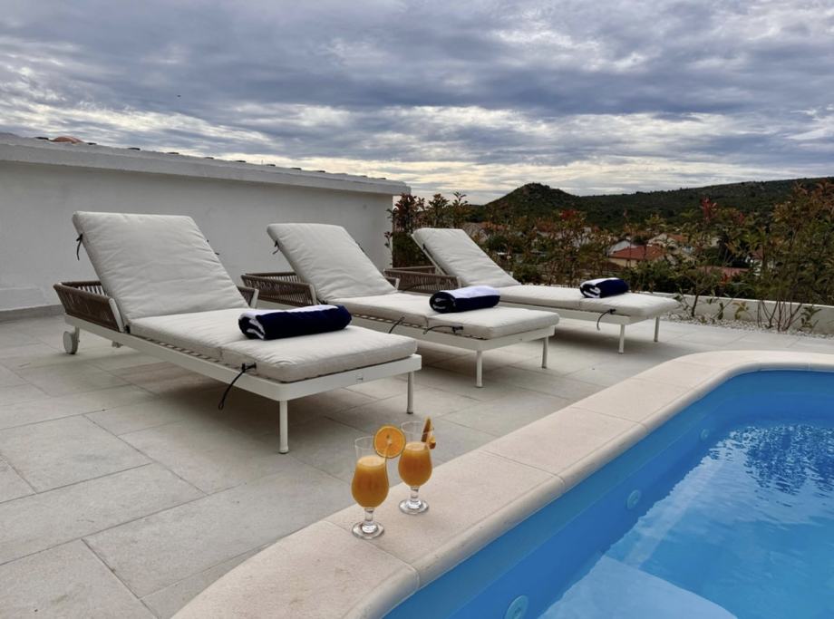 Iznajmljuje se moderno uređena vila u Rogoznici, savršena za miran boravak u luksuznom ambijentu. Vila nudi četiri elegantne spavaće sobe, tri moderno opremljene kupaonice, prostranu kuhinju i udoban dnevni boravak s podnim grijanjem. Potpuno je klimatizirana, s WiFi internetom i TV-om u svakoj sobi, što jamči potpunu udobnost.