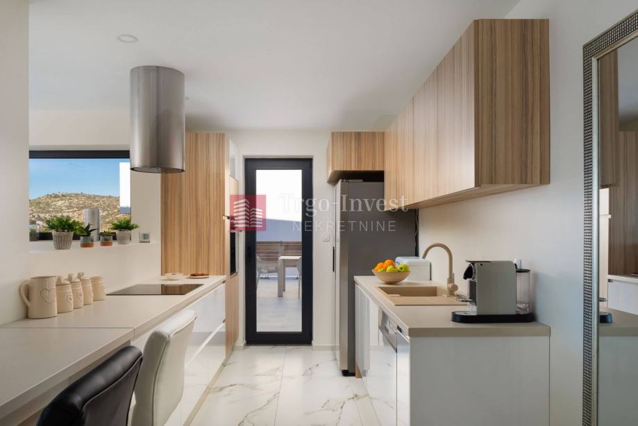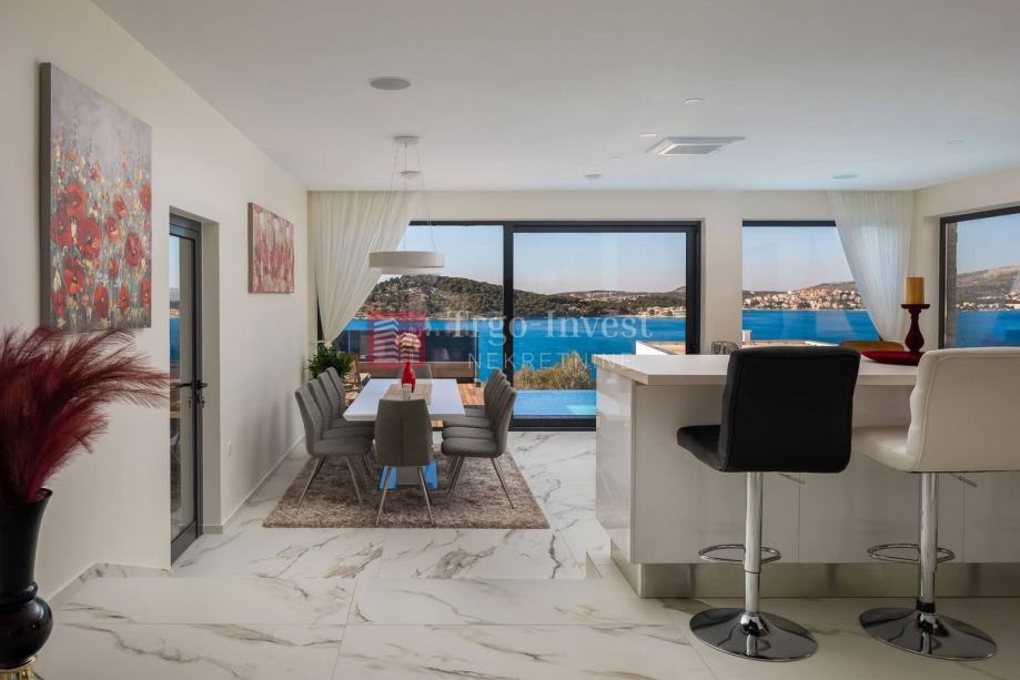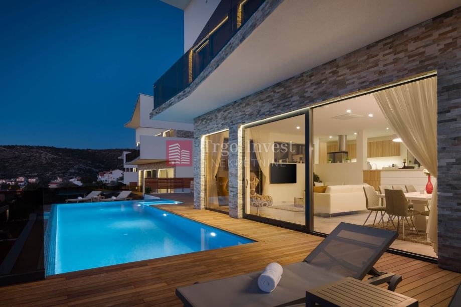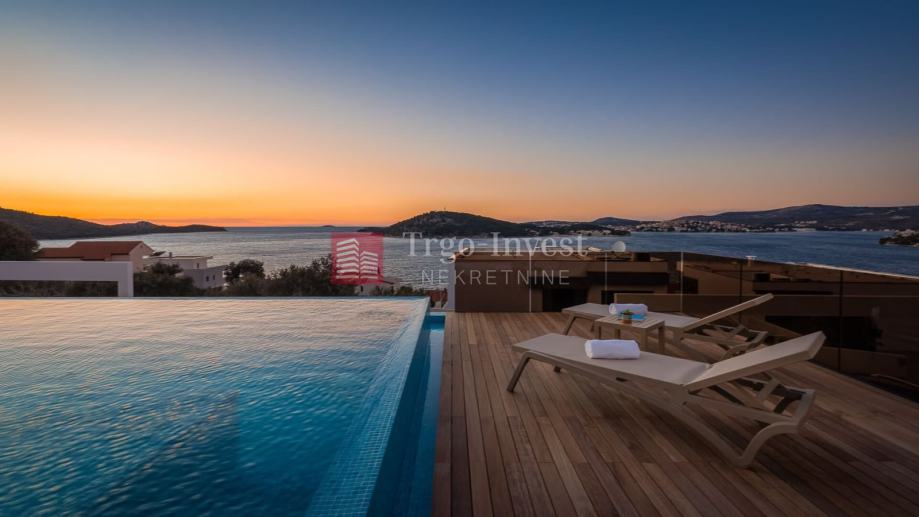Luksuzna vila smještena u mirnom dalmatinskom mjestu u blizini Rogoznice u zatvorenom kompleksu vila nudi očaravajući spoj moderne arhitekture i prirodnog ambijenta s jedinstvenim pogledom na jedan od najljepših zalazaka sunca koji zalazi direktno u more.