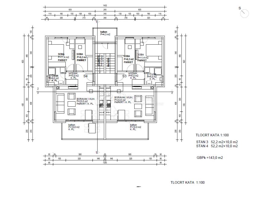 Ukupna površina zatvorenog dijela: 52,2 m²