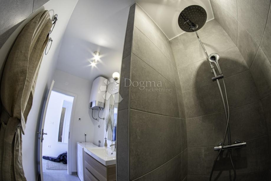 Prodaje se prostrani, potpuno namješten stan ukupne korisne površine 82,19 m², smješten na prvom katu kvalitetno uređene i namještene kuće s uhodanim turističkim najmom. Nekretnina se nalazi na iznimnoj lokaciji u Rogoznici, svega 200 metara od mora i plaže.