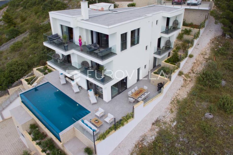 Rogoznica, Zatoglav, luksuzna vila s bazenom, 330 m² izgrađena 2024. Uz villu je bazen na terasi s pogledom na more. Villa je idealna za odmor ili za turistički najam.Izgrađena na 3 etaže na parceli od 688 m². U prizemlju se nalazi teretana i wellness, kupaonica, ostava, kotlovnica i vešeraj. Iz wellness se izlazi na veliku terasu s bazenom i pogledom na more. Na prvom katu nalaze se tri spavaće sobe, svaka sa svojom kupaonicom, te natkrivenom terasom. Na drugom katu je prostrani dnevni boravak s izlazom na terasu, kuhinja i blagovaonica, WC, te još jedna spavaća soba s privatnom kupaonicom. Sve etaže su povezane dizalom. U podnožju vile je garaža za jedno vozilo, te je oko vile još dodatnih 5 parkirnih mjesta.Oko ville se prostire lijep vrt, te prostor za sunčanje. Nekretnina je odlično opremljena, a izdvojili bismo saunu, jacuzzi, teretanu, dizalo, podno grijanje, vinski podrum, te klima uređaj u svakoj prostoriji. Mikrolokacija ville je odlična, na mirnom mjestu okružena prirodom, te samo 80 metara od mora.Sve ostale informacije na upit....